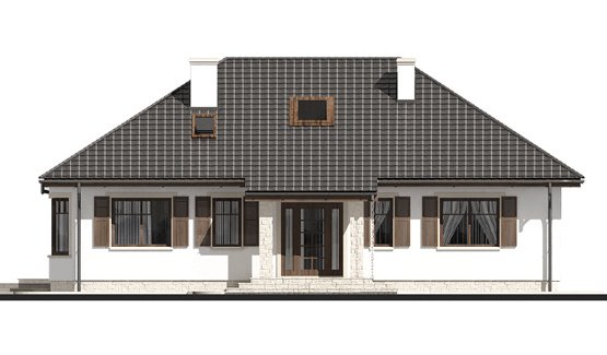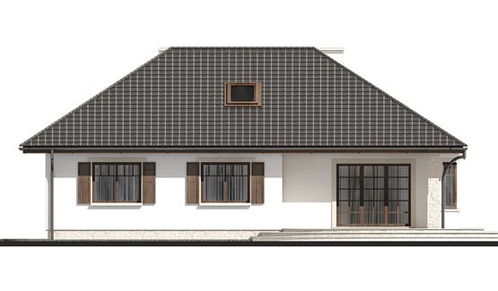 Dom jednorodzinny, wolno stojący, parterowy, bez podpiwniczenia, ze stromym, kopertowym dachem i frontowym gankiem. Tradycyjnej, bardzo prostej i eleganckiej architekturze towarzyszy funkcjonalnie zaprojektowane wnętrze z obszernym salonem, który prowadzi na częściowo zadaszony taras. Możliwość adaptacji poddasza w późniejszym etapie. Do wyboru różne wersje projektu: parterowa lub z użytkowym poddaszem, z garażem dwustanowiskowym i w lustrzanym odbiciu.