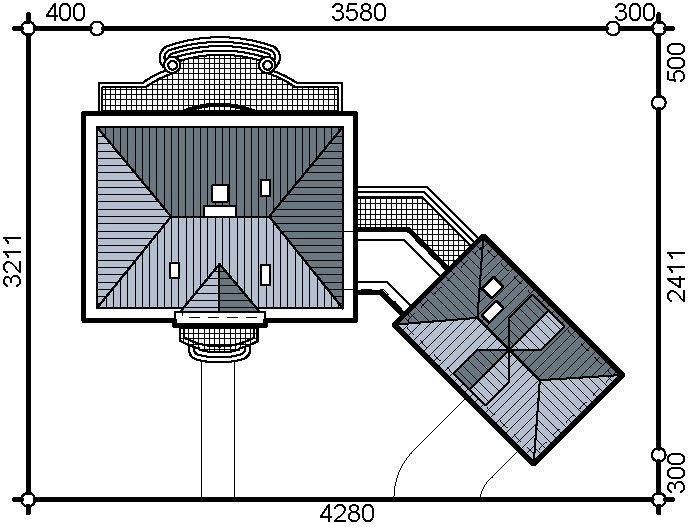 W skrzydle garażowym zaprojektowano dwa stanowiska na samochody oraz kotłownię, spiżarnię, pralnię, pom. gospodarcze. Dodatkowym atutem jest wykorzystanie przestrzeni poddasza nad garażem, gdzie przewidziano niezależny apartament gościnny lub służbówkę. Budynek najkorzystniej będzie prezentował się na rozłożystej, podmiejskiej działce.